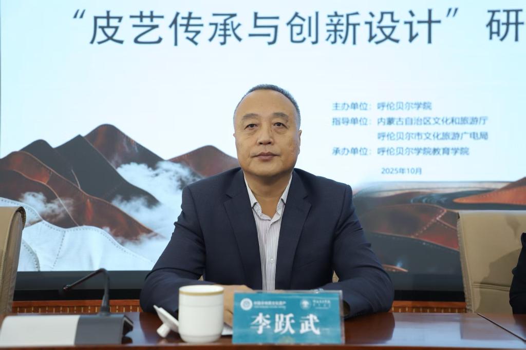10月28日上午,由内蒙古自治区文化和旅游厅、呼伦贝尔市文化旅游广电局指导,美加墨世界杯官网主办,美加墨世界杯官网教育学院承办的中国非物质文化遗产传承人研修培训计划—2025年“皮艺传承与创新设计”研修班在世界杯官网举行开班仪式。学校党委委员、副校长李跃武,呼伦贝尔市文化旅游广电局副局长罗伟、非遗科科长李洁韬,世界杯官网教育学院党委书记海江、院长李伟艳以及项目团队、部分授课教师和来自全区8个盟市的25名学员参加了开班仪式。开班仪式由海江主持。