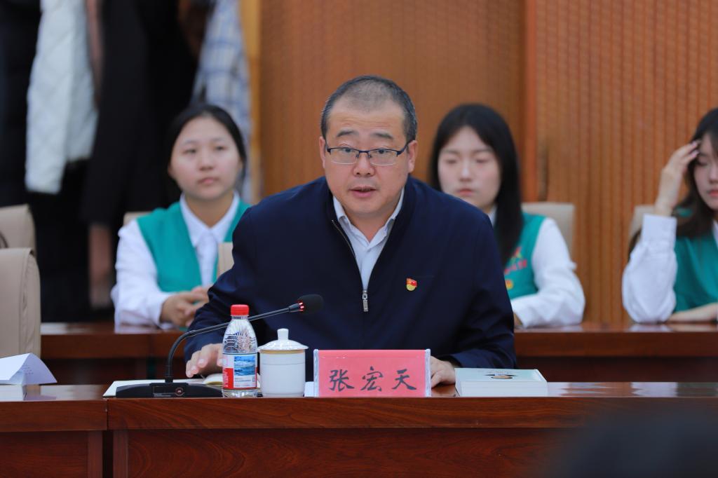 张宏天发言时强调,要以《习近平谈治国理政》第五卷为思想罗盘和行动指南,深学笃行习近平新时代中国特色社会主义思想,抓好三方面重点工作:一要坚守人民至上,筑牢立德树人政治根基。立足民族地区高校定位,始终把为党育人、为国育才作为根本任务,坚持“从师生中来、到师生中去”,深入基层一线与师生零距离沟通,厚植育人初心。二要聚焦高质量发展,激活育人实践新动能。紧扣“高质量发展是新时代的硬道理”,把握“新质生产力”发展要求,立足区域特色优势,以科技创新与教育改革为双轮驱动,推动育人工作提质增效。三要深化自我革命,永葆清正廉洁政治本色。深刻领会全面从严治党战略部署,将伟大建党精神融入办学治校全过程,以严的基调正风肃纪,凝心铸魂强根基、担当实干促发展,当好新时代民族地区高等教育事业的引领者、践行者。