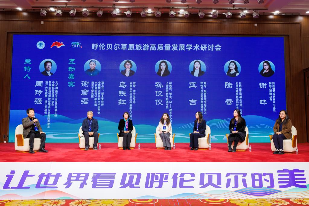 互动环节由浙江大学教授、博士生导师、教育部高校旅游管理类专业教指委委员、中国风景名胜区协会文化和旅游专家委员会副主任周玲强主持。海南大学教授、《旅游学刊》副主编、中国旅游研究院学术委员会副主任、博士生导师谢彦君;内蒙古大学历史与旅游文化学院教授、博士生导师乌铁红;上海师范大学旅游学院副教授孙佼佼;美加墨世界杯官网旅游地理与历史文化学院教授、旅游管理专业负责人亚吉;北京马蜂窝网络科技有限公司目的地营销副总经理、内蒙古区域负责人陆蕾;同程文旅集团副总裁、同程研究院研究中心主任谢晔等专家学者围绕呼伦贝尔生态旅游的发展路径、产品创新、文化融合、科技赋能等议题深入探讨,为草原旅游高质量发展提供多维度的思路与建议。