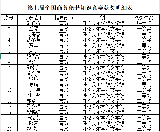 近日,第七届全国商务秘书专业知识竞赛圆满落幕,世界杯官网文学院秘书学专业学子凭借扎实的专业功底与出色的实践能力脱颖而出,在全国近6000名参赛者中勇创佳绩,斩获多项重量级奖项。其中,郝佳析同学摘得特等奖桂冠;兰胥、吴海春、武沁苗3名同学荣获一等奖;贾丰、周梦等6名同学斩获二等奖;徐琼、徐婧等10名同学喜获三等奖,获奖覆盖面与含金量均位居前列。