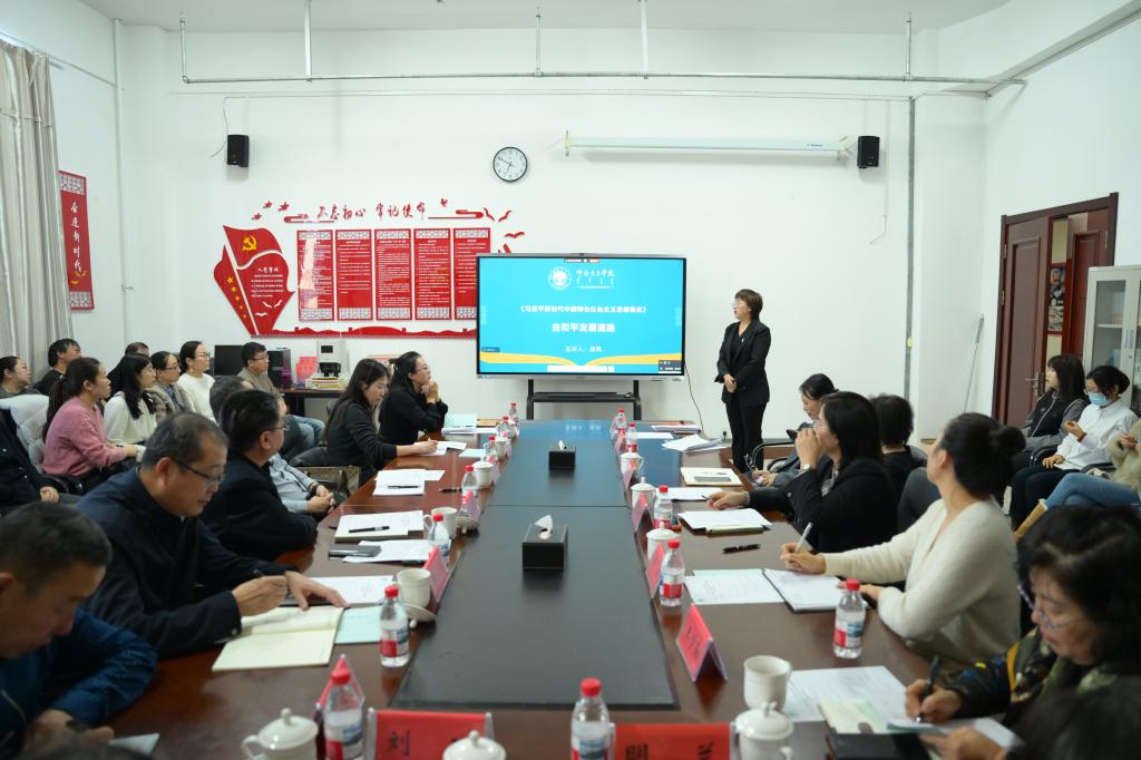 世界杯官网马克思主义学院《习近平新时代中国特色社会主义思想概论》教研室主任李凌敏、赤峰学院马克思主义学院同课程教研室主任张冬梅分别汇报了各自院校课程建设情况。两位主任从教材分析、教学改革探索、育人成效总结等方面展开详细阐述,既展现了两校在思政课建设中的扎实举措与鲜明特色,也为校际经验互鉴搭建了有效桥梁。