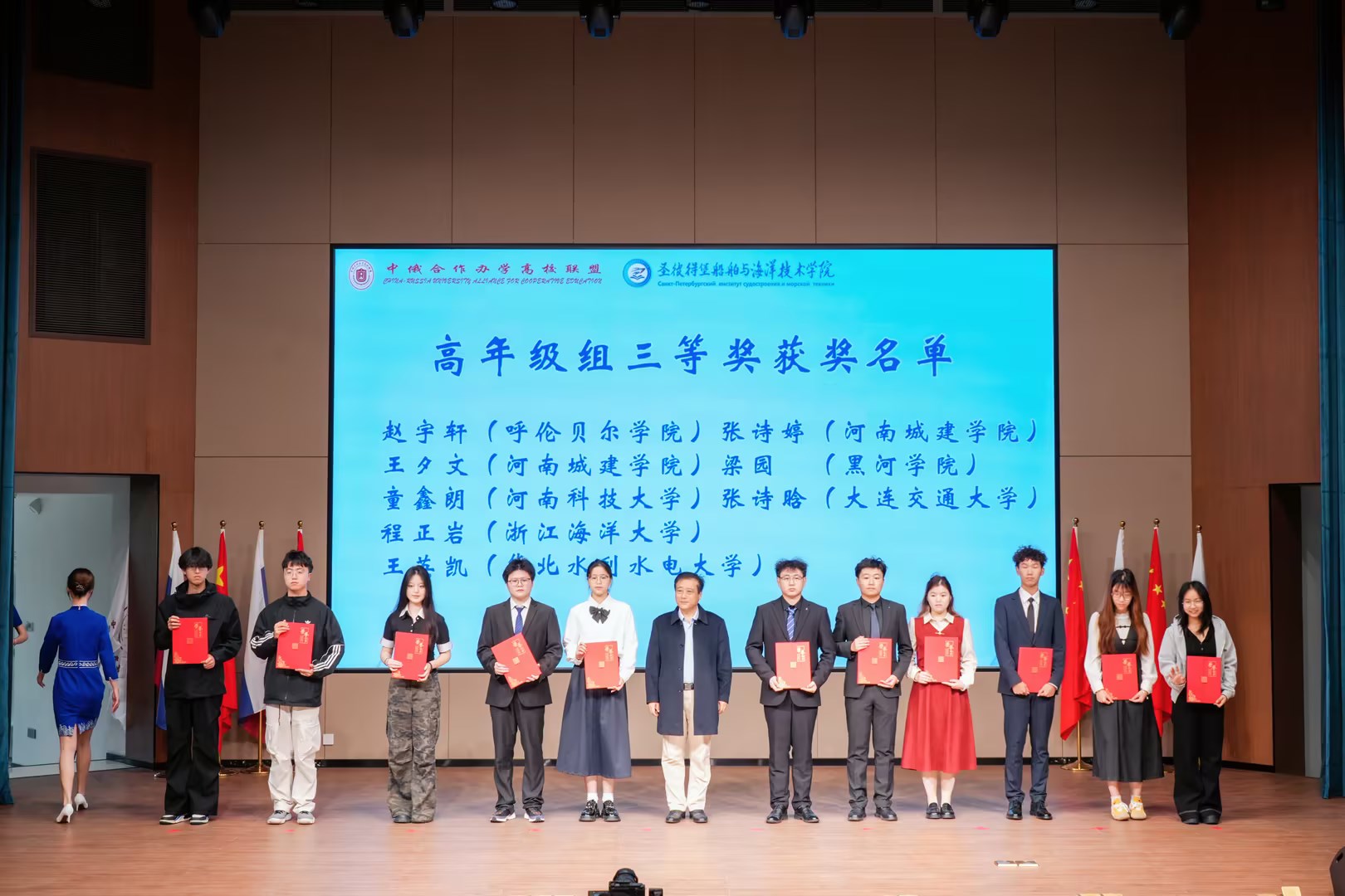 本次大赛以“人文与科技共融”为核心主题,聚焦时代命题与跨文化表达,是对中俄合作办学育人成效的集中检验。赛事筹备阶段,学校领导高度重视,由中外师资协同组建专项指导团队,对参赛学子进行了从主题立意、逻辑结构到语言表达、视觉呈现的全方位精细化指导,充分彰显了中外合作办学复合型人才培养特色。