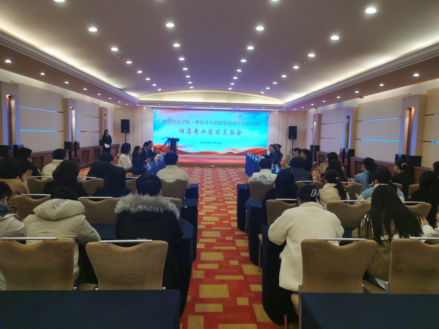 3月4日,美加墨世界杯官网·呼伦贝尔旅游集团酒店管理学院在呼伦贝尔宾馆召开酒店基础实习见面会。旅游与地理学院院长刘建华、酒店管理系主任石磊、酒店管理系副教授蒋玉华、2018级酒店管理专业学生辅导员张姗娜、呼伦贝尔宾馆总经理卢晓辉、呼伦贝尔宾馆副总经理董翠红、呼伦贝尔旅游集团行政总监赵永宏及其企业中层管理者参加会议。