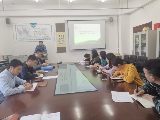 最后,乌云书记作总结发言,提出三点工作要求:一是班主任、辅导员一定要认真学习掌握以上三个制度文件,这是做好学生工作的依据和指南;二是按照党团和学工工作要求,结合迎接建党100周年,积极开展班团活动,扎实做好学生思想政治教育,努力践行社会主义核心价值观,铸牢中华民族共同体意识;三是加强学生日常管理,持续做好疫情防控工作,确保学生身心安全和校园安全稳定。