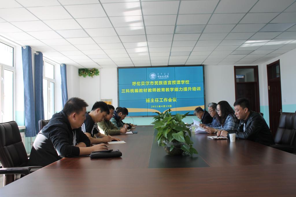 4月19日,继续教育学院在安培办公楼会议室召开了呼伦贝尔市三科统编教材教师教育教学能力提升培训班主任工作会议。继续教育学院党总支书记何平、院长莎茹莉、副院长孙志文、培训科科长刘磊、培训班各班班主任参加了此次会议。会议由莎茹莉院长主持。