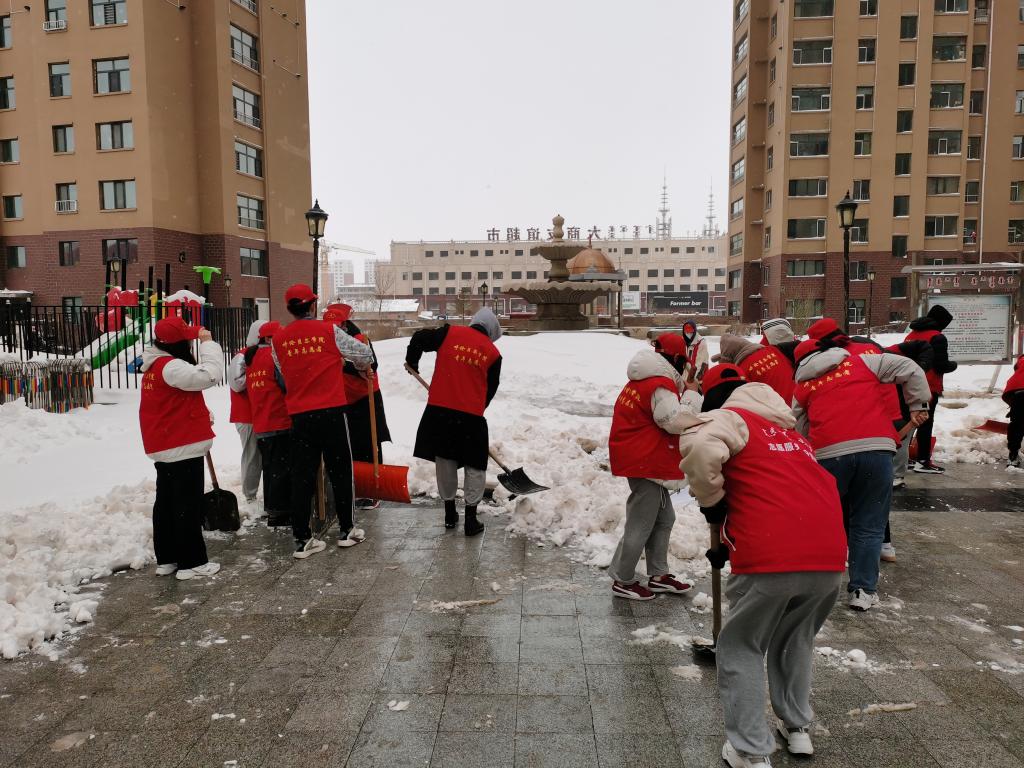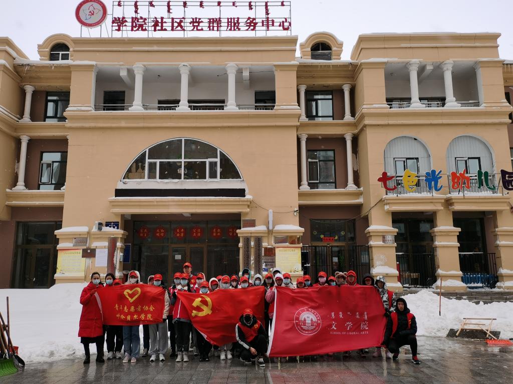 一场春雪席卷呼伦贝尔,在长达六个多小时的降雪后,厚厚的积雪给人们出行带来极大不便。4月17日下午,文学院青年志愿者协会与校青协组织志愿者们来到学院社区清除积雪。