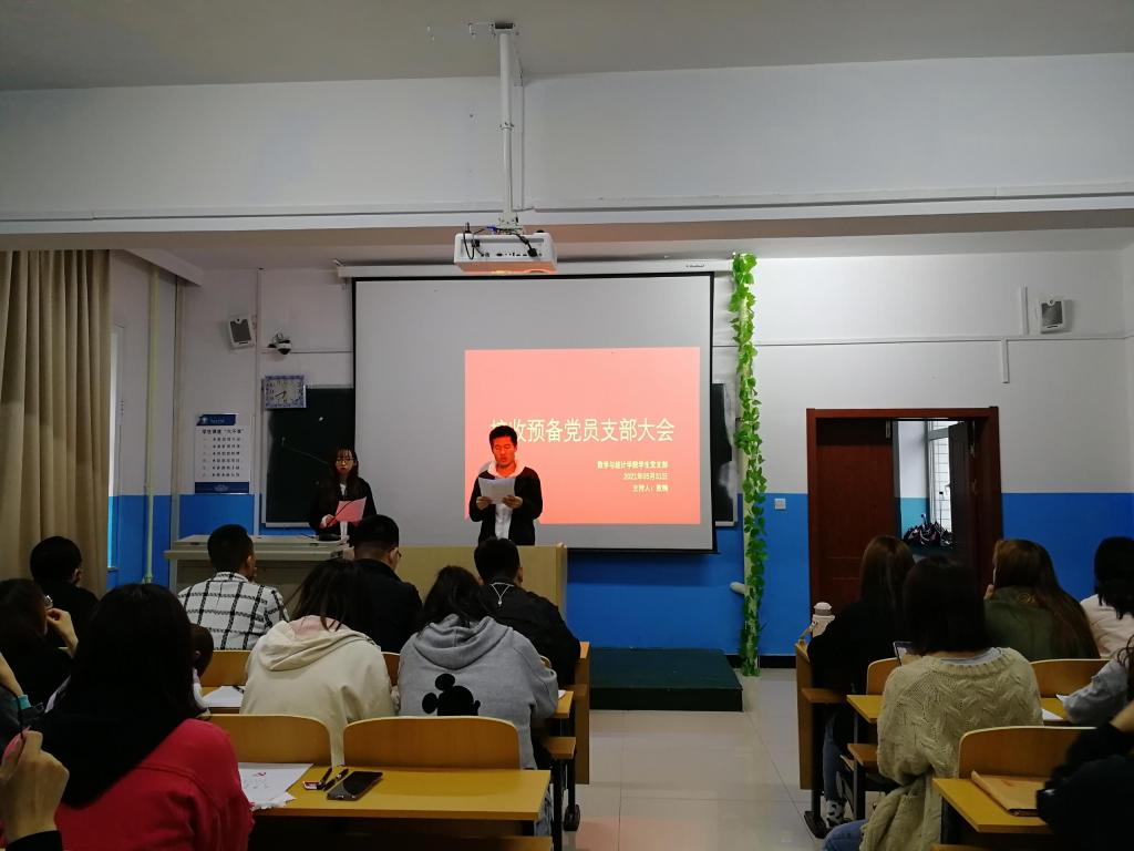 5月31日,数学与统计学院学生党支部在笃学楼401召开2021年上半年接收预备党员支部大会,讨论发展辛艳茹等75名同志为预备党员的事宜。会议由学生党支部书记何春颖主持,学生党支部全体党员、发展对象及入党介绍人参加了会议。