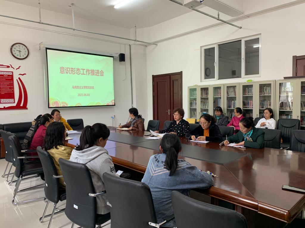 6月3日,马克思主义学院召开意识形态工作推进会。马克思主义学院党总支书记刘凤琴、副院长吴秀芳和教师参加会议。