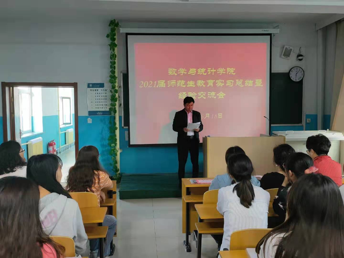 6月18日下午,数学与统计学院在笃学楼313组织召开了2021届师范生教育实习总结暨考研经验交流会。数学与统计学院领导班子、系主任、优秀实习生以及全体大三学生参加了会议。