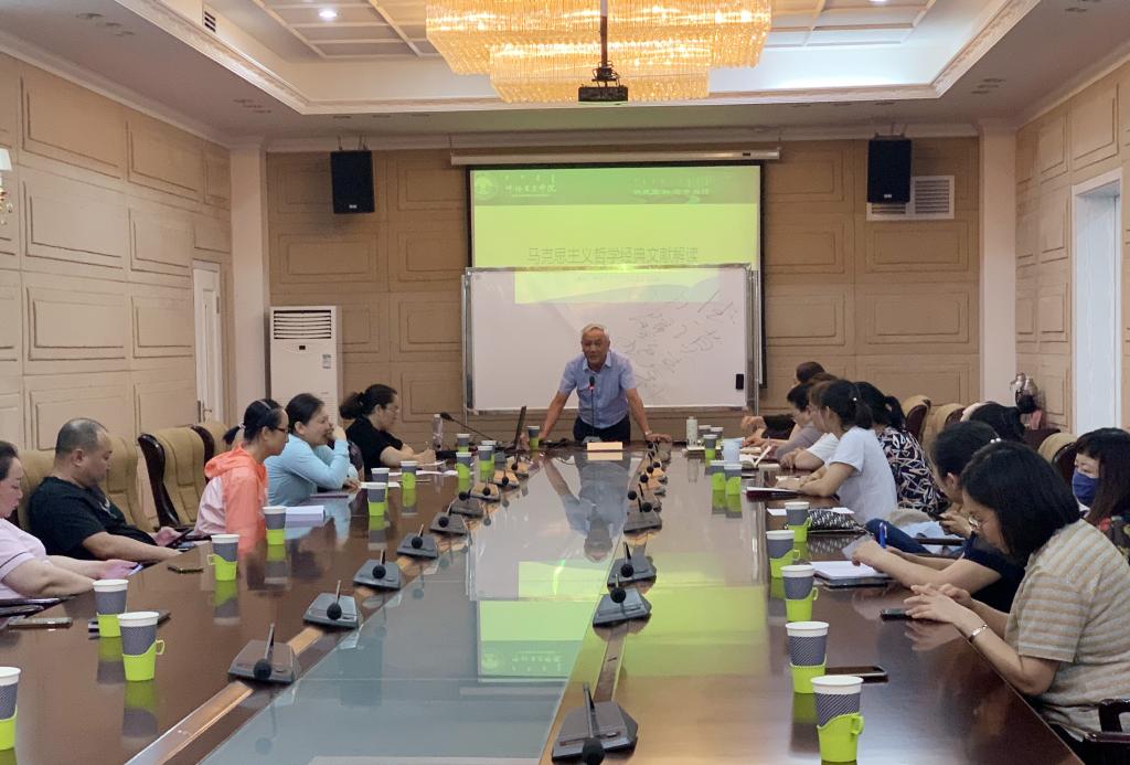 7月5日,马克思主义学院邀请内蒙古财经大学马克思主义学院乌峰教授,在图书馆三楼报告厅举办《马克思主义哲学经典文献解读》和《国家社科基金选题与申报指导》专题讲座。马克思主义学院全体教师和相关文科专业教师参加讲座。马克思主义学院副院长吴秀芳主持讲座。