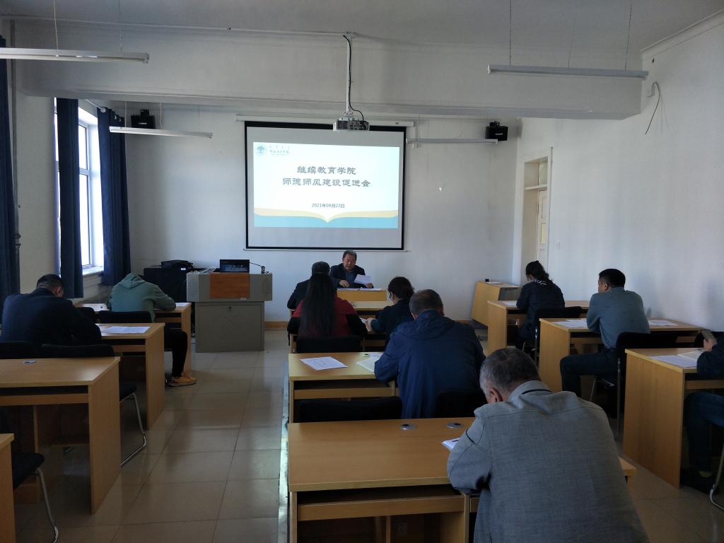 9月22日,继续教育学院召开了师德师风促进会。继续教育学院直属党支部书记何平主持会议,全体教职工参加了会议。