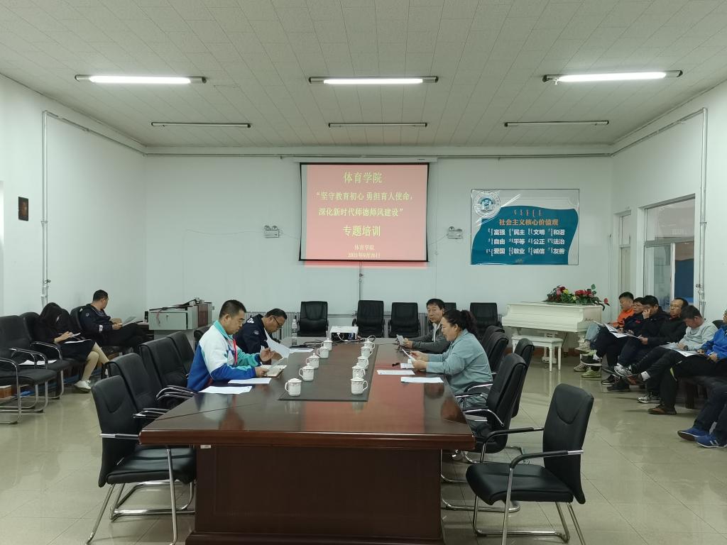 9月是世界杯官网师德师风专题培训月。为全面贯彻习近平总书记关于教育的重要论述和全国教育大会精神,进一步推动师德师风建设常态化,26日上午,体育学院召开“坚守教育初心,勇担育人使命,深化新时代师德师风建设”专题培训会,会议由党总支书记李伟艳主持,全体教职工参加培训学习。