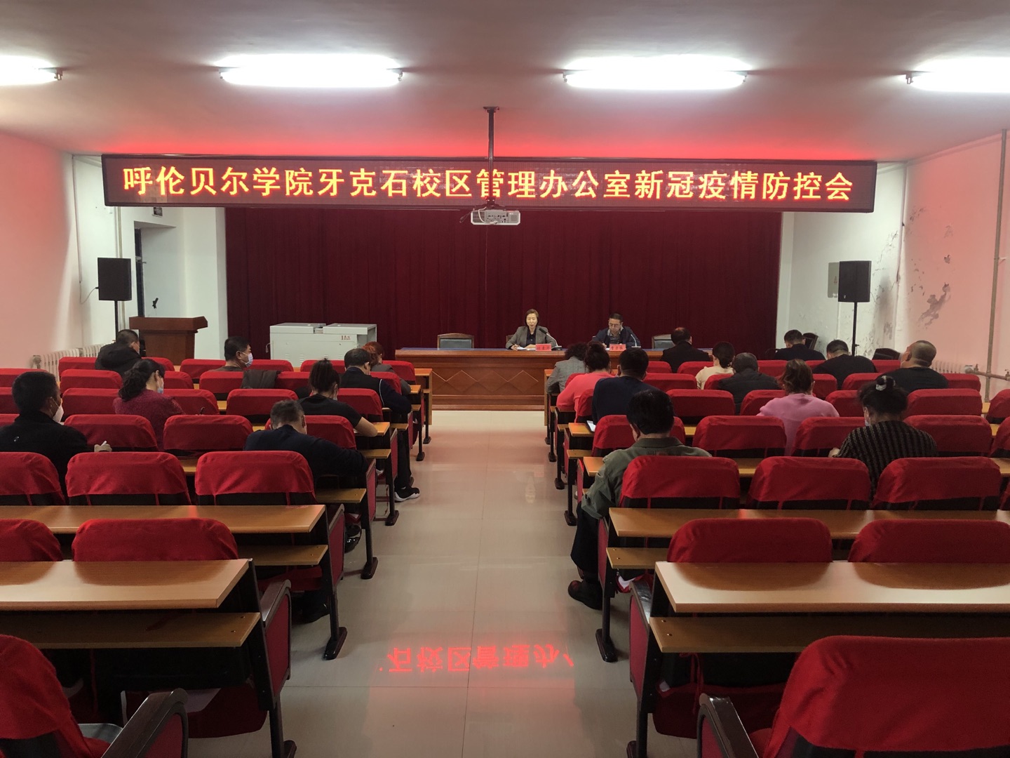 为筑牢疫情防控“壁垒”,牙克石校区管理办公室迅速响应。10月25日,牙克石校区管理办公室主任刘素华组织各部门负责人在实验楼三楼会议室紧急召开疫情防控工作专题会议,及时传达上级会议精神,对校区防控工作进行全面安排部署。