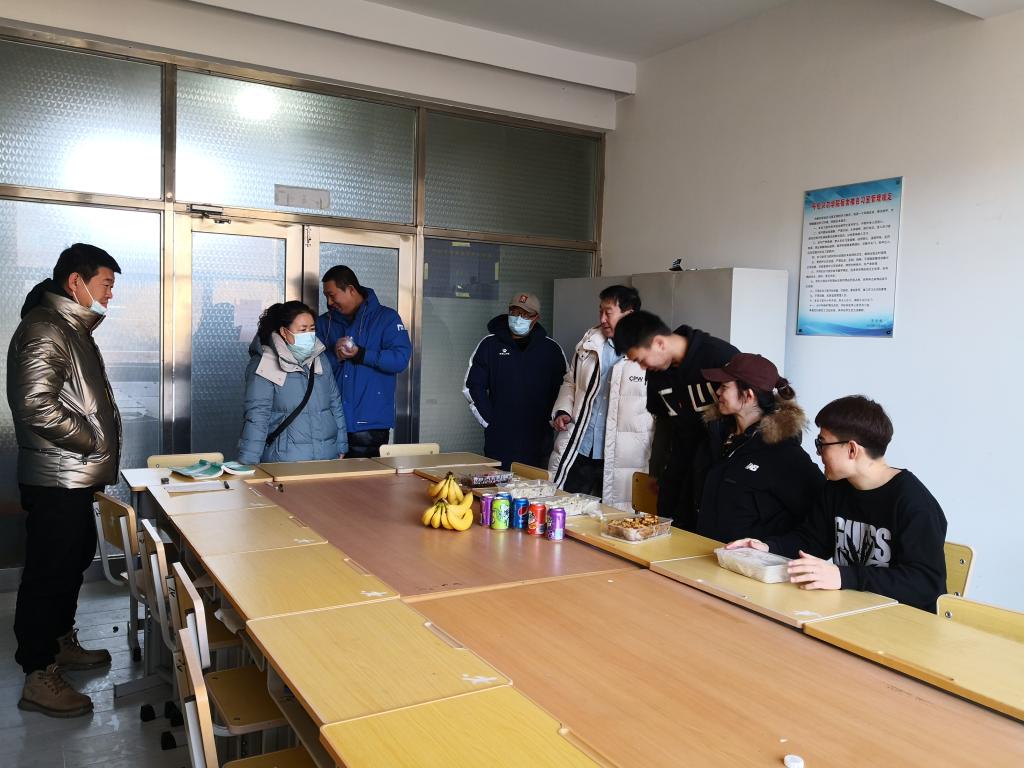 12月21日,是农历二十四节气中的冬至,也是我院学子备战2022年考研的最后冲刺时刻,为了表达对备考学生的关心与慰问,缓解学生们的学习压力,今天中午,学院党总支书记李伟艳、副书记胡日查、副院长林剑冬、团学办主任郭晨、2018级备考学生班主任马彦萍、辅导员朱永生老师一起来到学生公寓自习室,为考研学生送去热腾腾的饺子,与学生们进行了简单的交流,了解他们学习、生活中的困难,并鼓励他们调整心态,轻松上阵。