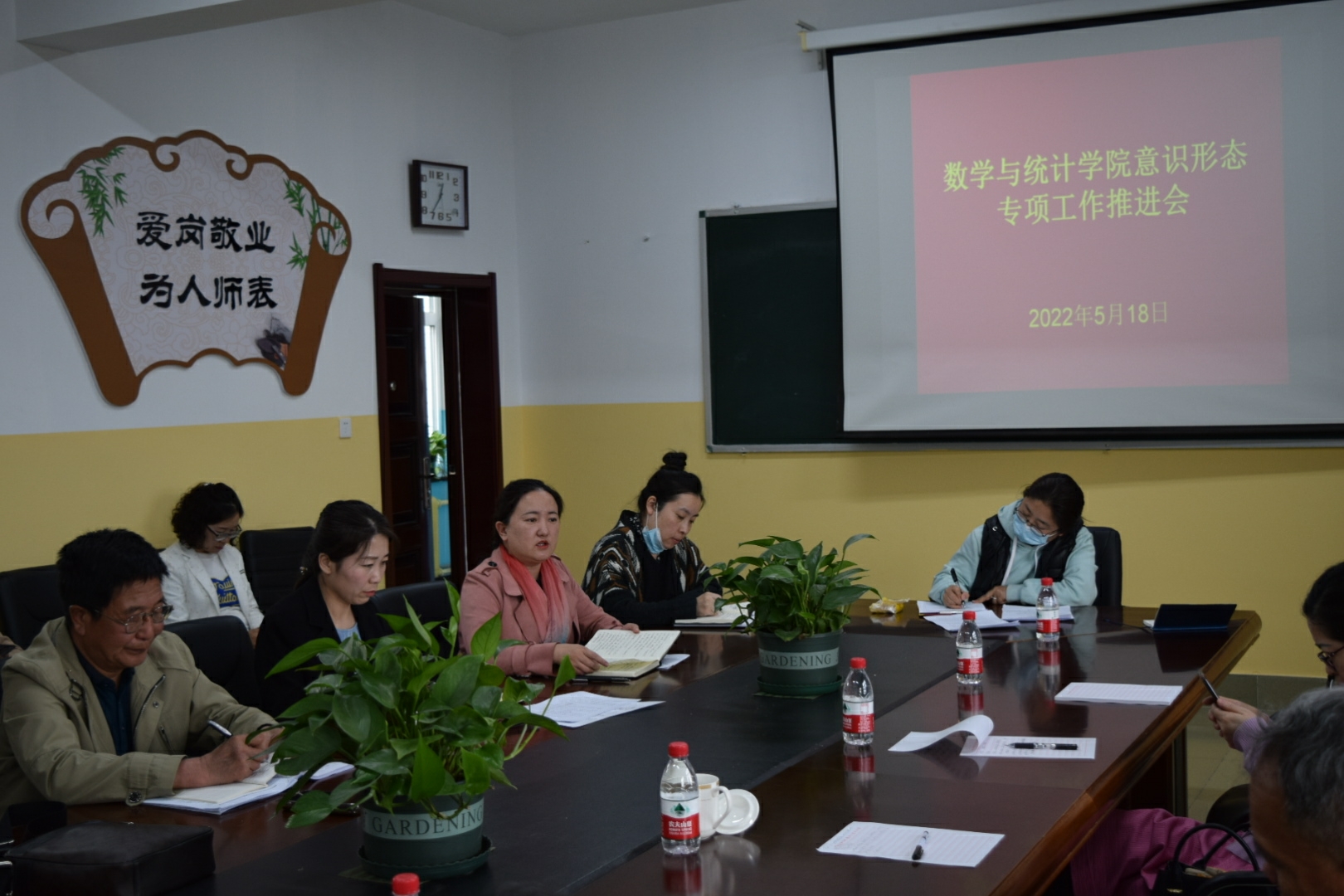 5月18日下午,数学与统计学院召开意识形态专项工作推进会。全体教职工参加会议,会议由数学与统计学院党总支书记宋旭霞主持。