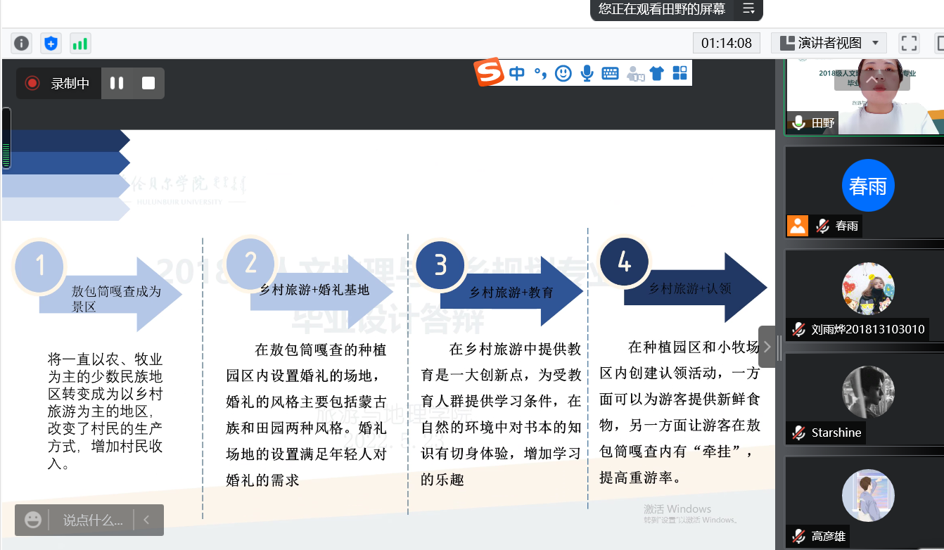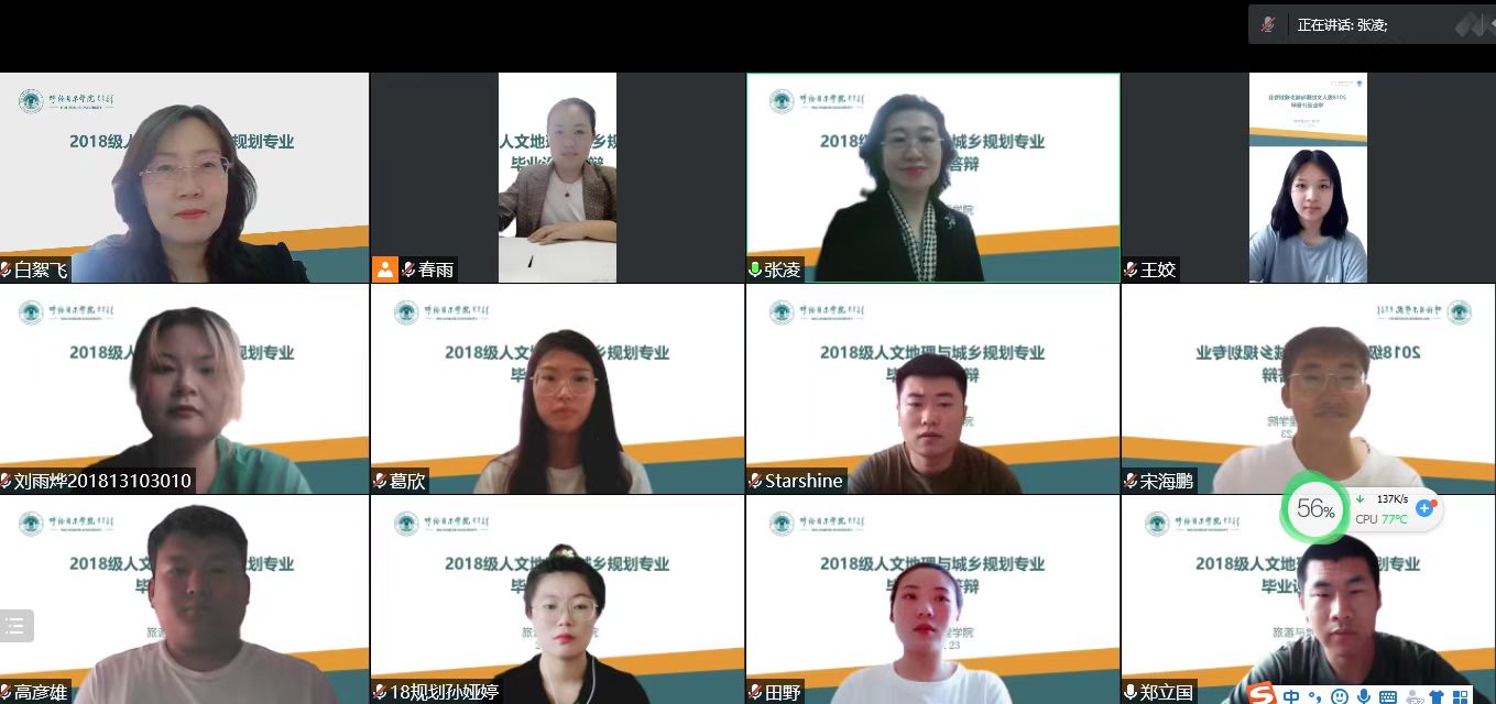 根据人才培养方案要求及《美加墨世界杯官网本科毕业生论文〈设计〉管理规定》,旅地学院在教学院长及各系室主任的安排下,于5.22-5.24日开展并圆满完成了2022届共计195名本科生的毕业论文(设计)线上答辩工作。本次毕业论文(设计)共分为12个答辩组,每组3名答辩老师,共有18名教师参与此次答辩工作。各答辩小组通过听取学生线上汇报、教师提问、学生答辩等环节为本届毕业生的论文(设计)质量把关。