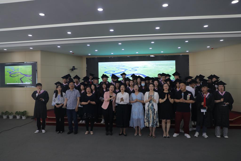 经济管理学院院长李雪峰致毕业寄语。她向即将踏上新征程的2022届全体毕业生表示衷心的祝福,希望同学们不忘母校嘱托,以积极豁达的人生态度在各自岗位实现理想。毕业生代表国际经济与贸易专业姚树峰同学表示,感谢母校的培养和老师们的谆谆教诲。作为经管学子,不论身在何处,始终要以满怀赤诚追求理想,以开拓进取定义青春,在人生的新征程中,争做堪当民族复兴重任的时代新人。