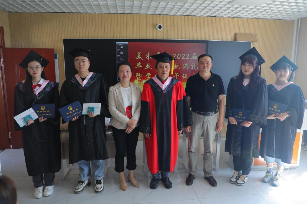 6月21日,美术学院在综合楼五楼智慧教室举行2022届毕业生毕业典礼暨学位授予仪式,仪式线上线下同步进行。