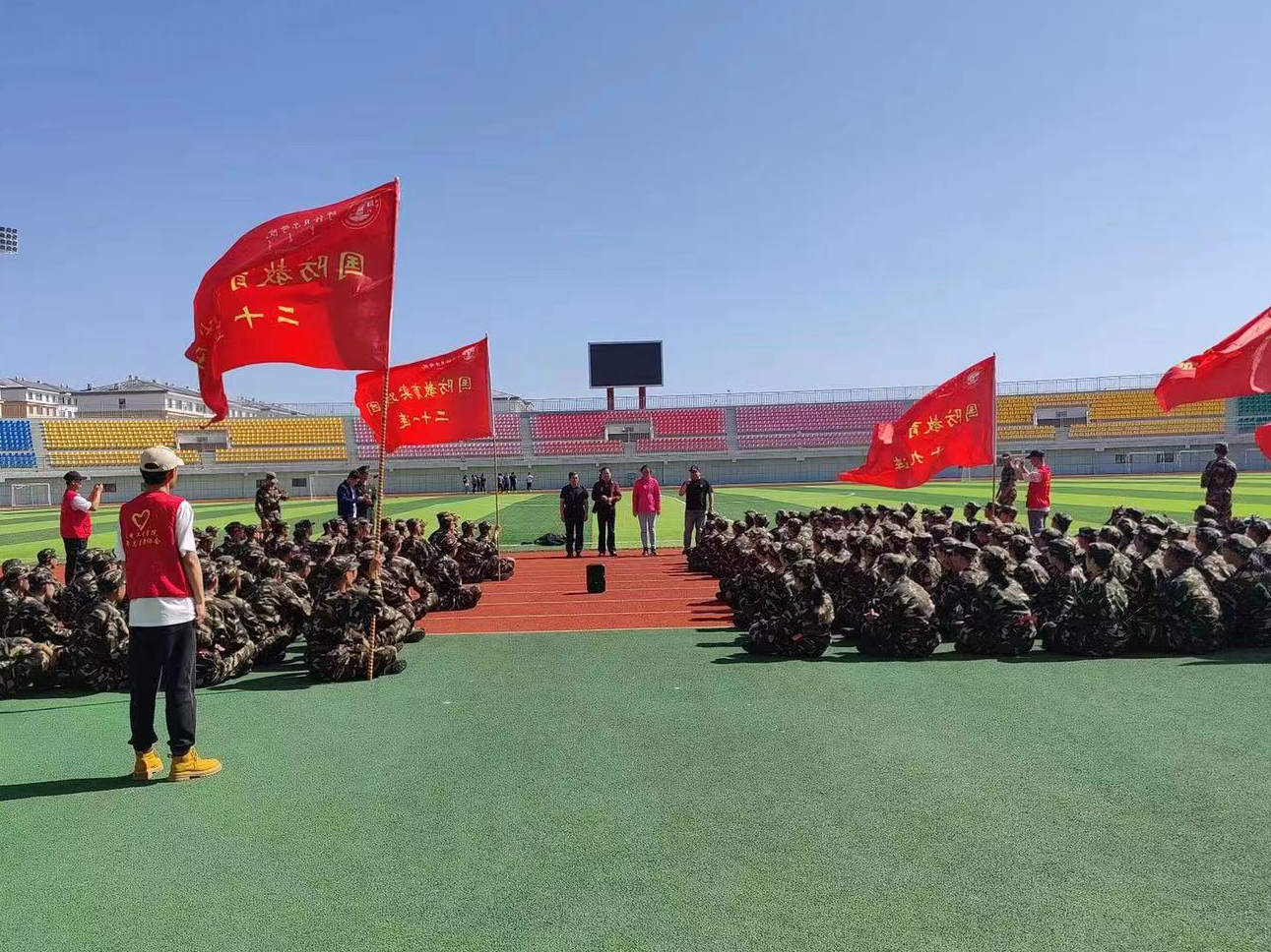 9月9日上午,机电工程学院在东山体育场隆重举行2022级新生入学教育暨师生见面会,学院党总支书记王旭,院长卜桂玲,党总支副书记汪鑫,副院长宋国岩,团学办公室主任吴晗,团学办公室副主任佟晟和2022级辅导员王欣悦参加了见面会,见面会由吴晗主任主持。