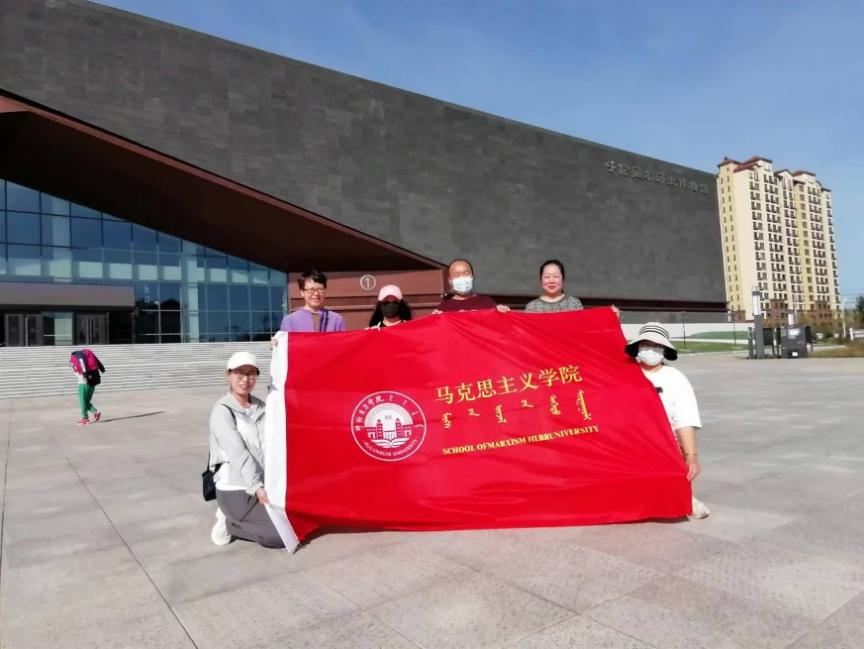 在喜迎党的二十大召开之际,为深刻了解历史,弘扬优秀的历史文化,备好、讲好“铸牢中华民族共同体意识”课,9月14日下午,马克思主义学院“铸牢中华民族共同体意识”教研室主任海龙教授带领课程组全体教师赴呼伦贝尔市历史博物馆进行主题为“呼伦贝尔各民族交往交流交融的历史过程”现场集体备课。