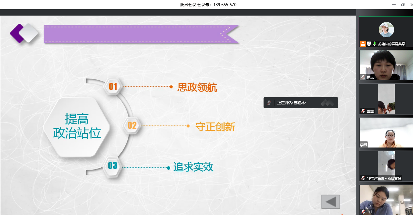 为了更好适应教育部师范类专业认证的新要求,进一步加强专业建设,马克思主义学院组织开展“中学政治教师素质养成”系列讲座。首期于9月24日开讲,邀请到鄂尔多斯市东胜区教学基本功竞赛(中学政治组)一等奖苏艳林老师为学院学生作“上好思政课 做好引路人”线上主题讲座。讲座由学院庞凤老师主持,学院全体学生在线参加。