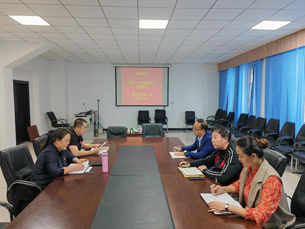 为深刻领悟党的二十大报告的丰富内涵和精神实质,充分发挥体育学院理论学习中心组在精准把握报告中提出的一系列新思路、新战略、新举措和先学一步、学深一层的示范引领作用,10月31日下午,学院理论学习中心组召开学习交流研讨,党总支书记李伟艳主持,住校工作的理论学习中心组全体成员,教师党支部组织员,学生党支部书记参加交流研讨。