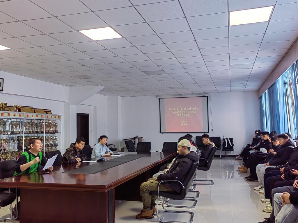 为深入学习贯彻党的二十大精神,落实党中央、国务院“稳就业”“保就业”决策部署,进一步做好2023届毕业生就业创业工作,11月25日上午,体育学院在东山体育场二楼会议室举办2023届毕业生校园招聘月启动仪式暨招聘宣讲会。学院党总支副书记胡日查,团学办主任郭晨,毕业生辅导员朱永生及全体毕业生参加了此次会议。