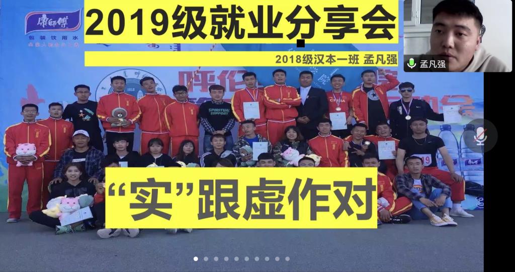 为进一步做好2023届毕业生就业创业工作,根据《美加墨世界杯官网2023届毕业生校园招聘月系列活动方案》,12月21日上午,体育学院邀请学院往届毕业生2018级体教汉本班学生孟凡强和孙颖在线为2023届全体毕业生做了就业经验分享会,学院党总支书记李伟艳、副书记胡日查、团学办全体教师和班主任参加了本次会议。