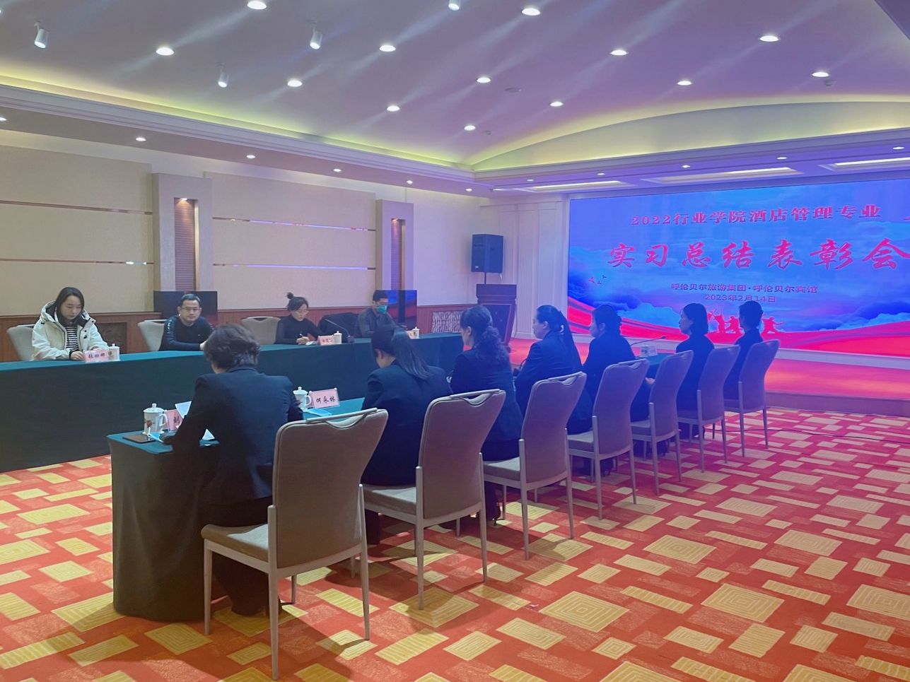 2月14日,美加墨世界杯官网·呼伦贝尔旅游集团酒店管理学院在呼伦贝尔宾馆召开2019级酒店管理一班专业实习总结表彰会。旅游与地理学院党总支副书记白絮飞、酒店管理系主任石磊、教师党支部书记苏洪文、学生党支部书记张姗娜、呼伦贝尔旅游集团董事长兼总经理卢晓辉、呼伦贝尔宾馆副总经理董翠红、呼伦贝尔旅游集团行政总监赵永宏及其企业中层管理者参加会议。