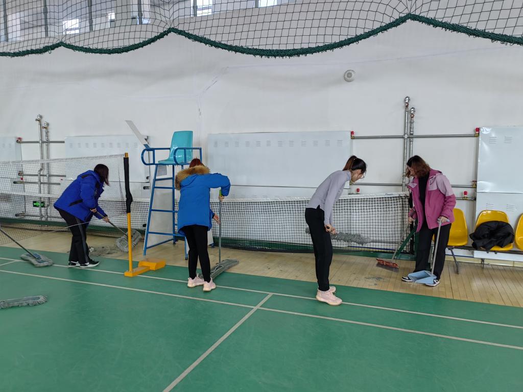 活动中,各支部的党员结队来到山下体育馆篮球排球区、网球区、体操综合区等地进行了大清扫,整个活动分工有序,大家手拿扫帚、拖把、抹布、塑料袋,清扫杂物、清理灰尘、清理污痕、捡拾烟头,并将清理出的垃圾、污物拣拾到塑料袋里运送到垃圾桶中。在劳动过程中,师生们“净化”环境的热情高涨,活动持续了一个多小时,换来了校园运动环境的整洁一新。