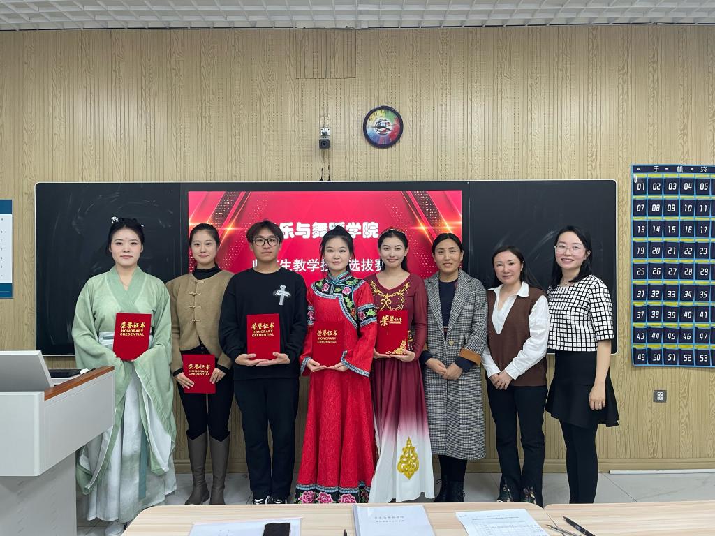 10月17日下午,音乐与舞蹈学院在艺术楼607室举办师范生教学技能选拔赛。学院副院长刘丽丽、实习实训中心主任何丹、教师李柳担任评委。