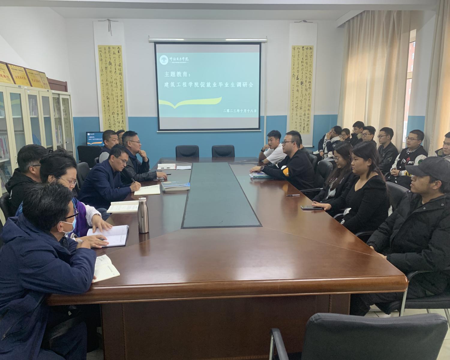 为推动学习贯彻习近平新时代中国特色社会主义思想主题教育走深走实,促进2024届毕业生高质量就业,10月18日,建筑工程学院召开毕业生就业专题调研座谈会。学院领导班子成员、各系办主任、毕业班辅导员和毕业生代表参加座谈会。