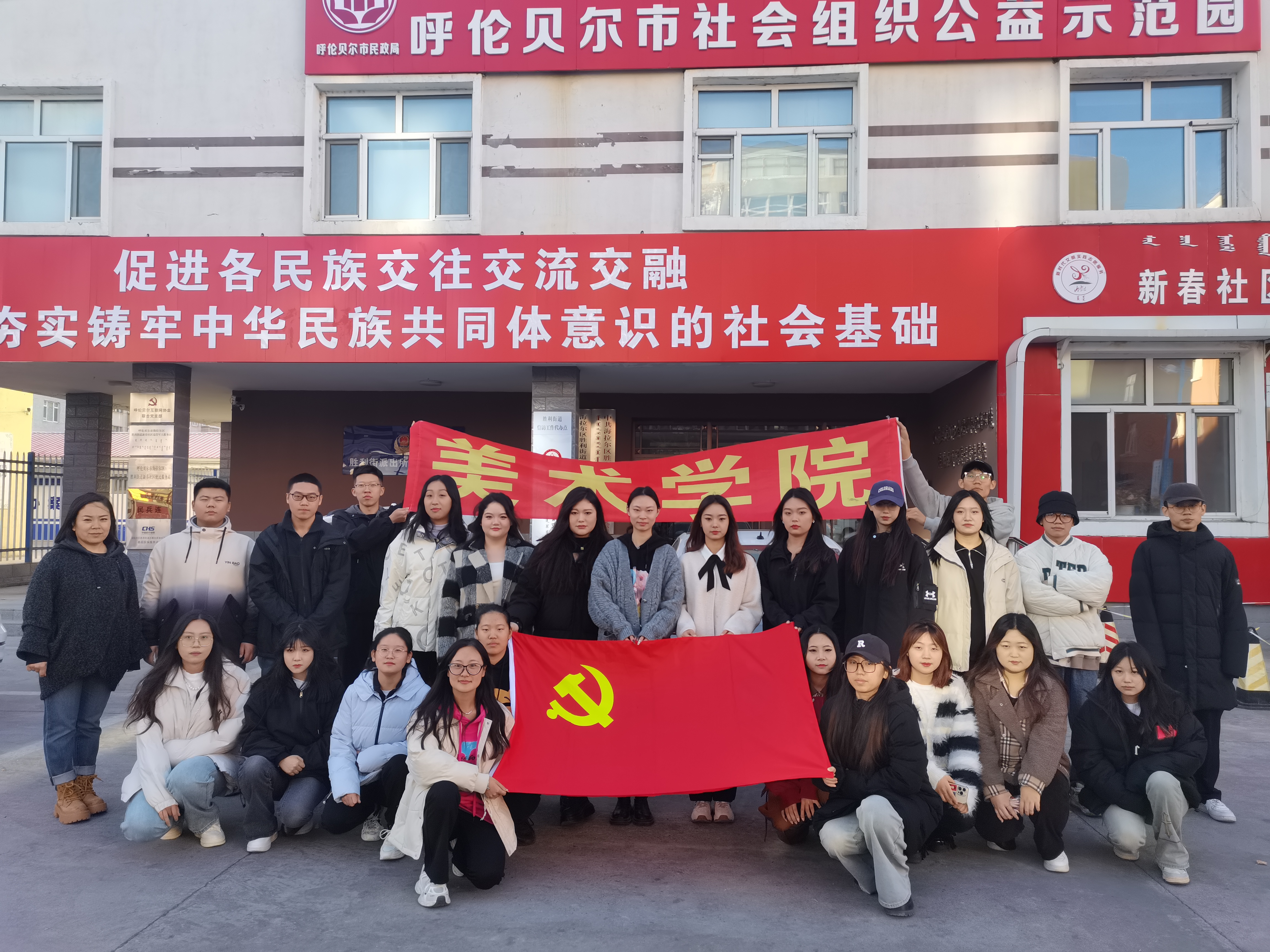 为全面把握和贯彻习近平总书记关于加强和改进民族工作的重要思想,提升大学生的民族理论素养,10月18日,美术学院学生党支部书记王雪菊带领学生党员以及青马班学员共20余人前往海拉尔区铸牢中华民族共同体意识教育展厅开展主题党日活动。