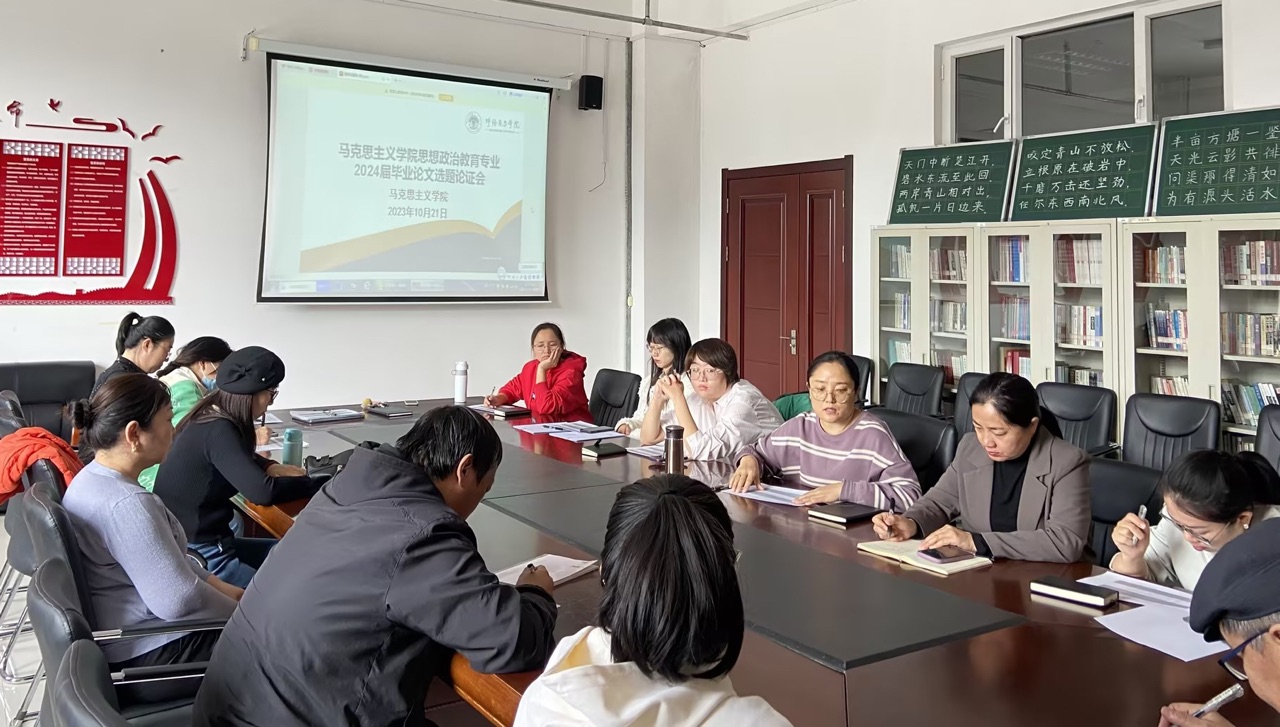 为进一步推进2024届本科毕业生毕业论文工作,提高毕业论文选题质量,确保学生毕业论文高质量完成,10月21日上午,马克思主义学院在崇文楼B123会议室组织召开了2024届思想政治教育专业本科毕业论文选题论证会,思想政治教育专业全体论文指导教师参加了本次会议。