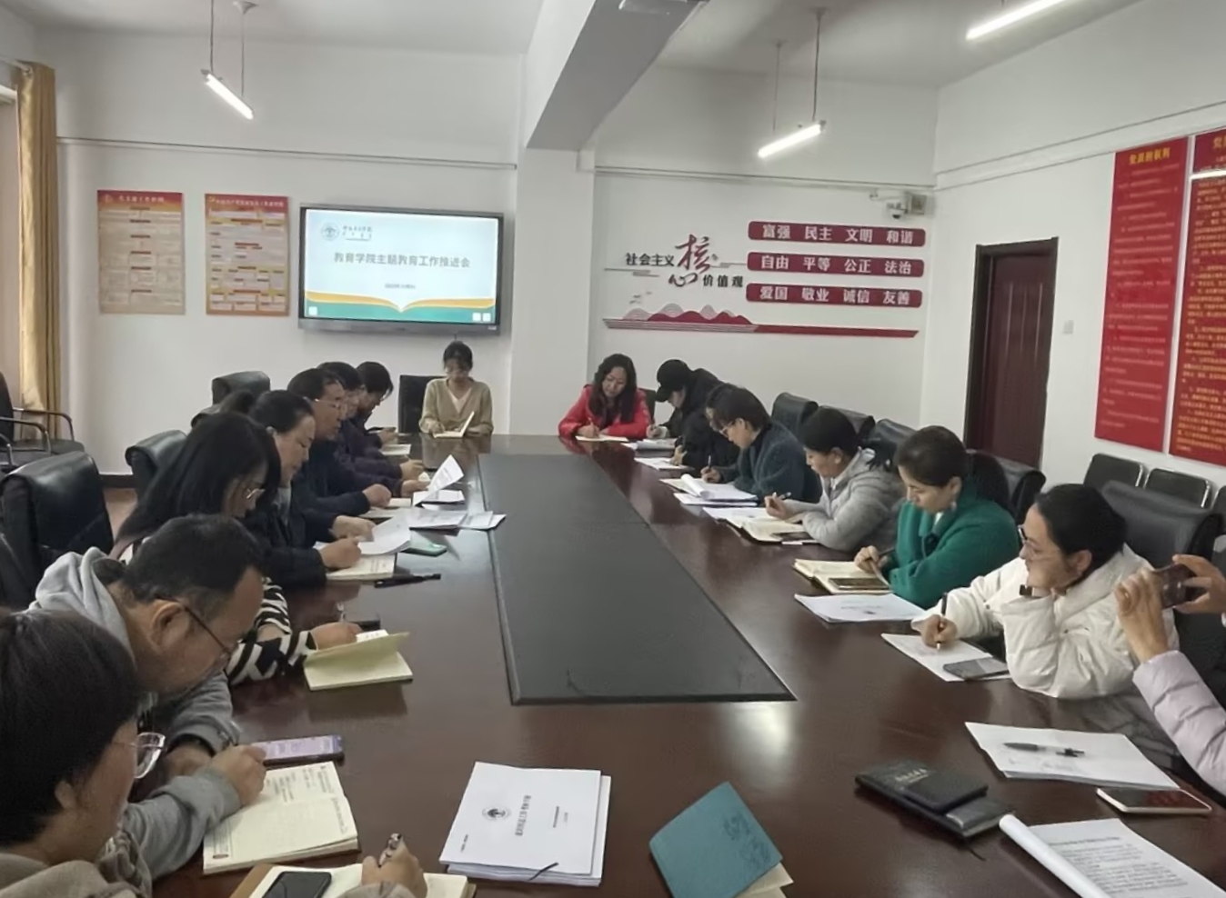 10月31日上午,教育学院在艺术楼210会议室召开主题教育工作推进会。学院班子成员、环节干部、支部书记参加会议。此次会议由学院党总支书记海江主持。
