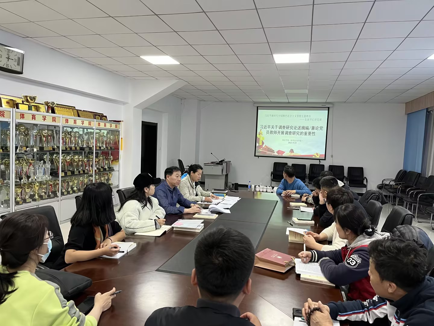 为深入开展主题教育,11月1日下午,体育学院(冰雪运动学院)教师党支部书记佘丽源在东山体育场二楼会议室,为全体教师党员讲授专题党课。