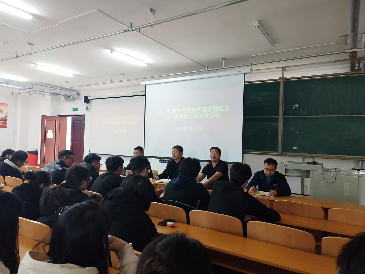 为扎实推进主题教育走深走实,落实好各项就业工作,有效解决毕业生急难愁盼问题,11月3日下午,人工智能与大数据学院班子集体走进2024届毕业生之中,与毕业生面对面座谈交流,听取毕业生就业意愿,了解毕业生毕业就业准备情况、就业求职中的困惑困难,并现场对学生提出的相关问题进行了解答。学院党总支书记朱福生主持座谈会,学院领导班子成员、团学办公室负责人、毕业班辅导员,以及2024届全体在校毕业生共同参会。