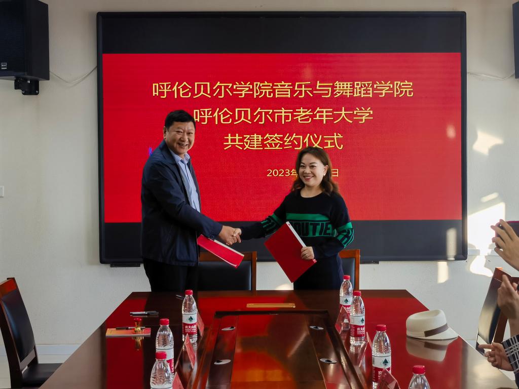 11月3日下午,音乐与舞蹈学院院长灵芝、副院长刘丽丽一行四人赴呼伦贝尔市老年大学签约实践实训基地。呼伦贝尔市老年大学校长乔大明、副校长李旭等参加本次签约活动。