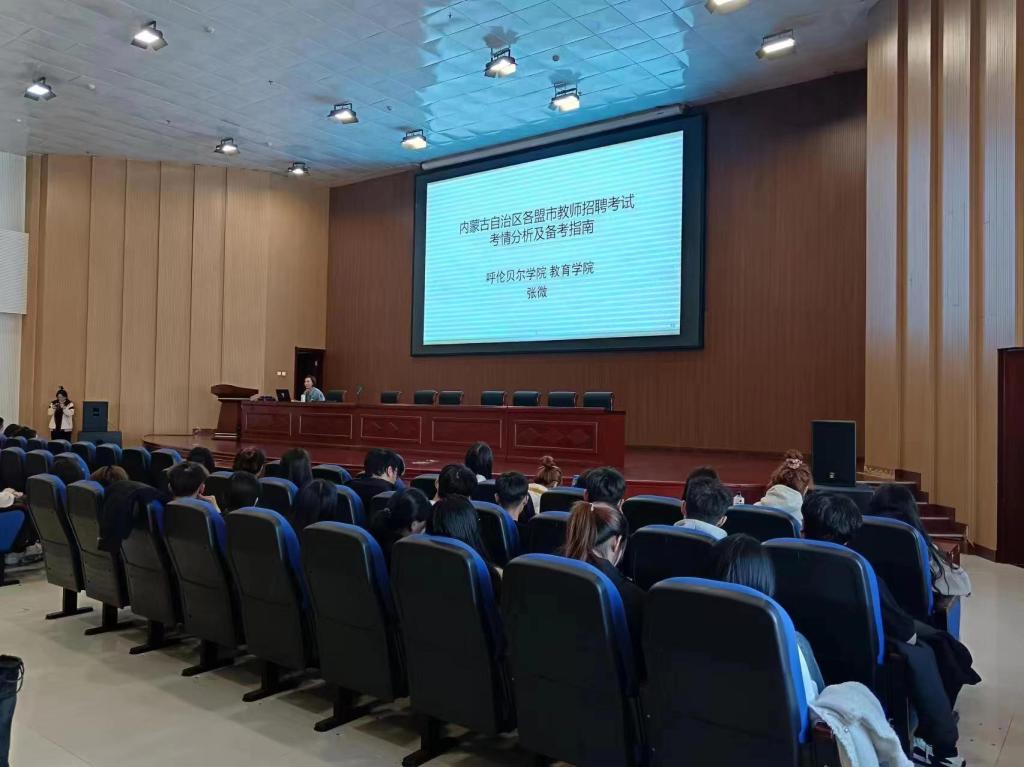 为帮助学生树立正确就业方向,了解考试考情,4月10日下午,教育学院在图书馆四楼报告厅开展内蒙古自治区各盟市教师招聘考试考情分析及备考指南讲座。本次讲座由学院心理学系教师张微主讲,学院辅导员及2021、2022级各班学生代表参加。