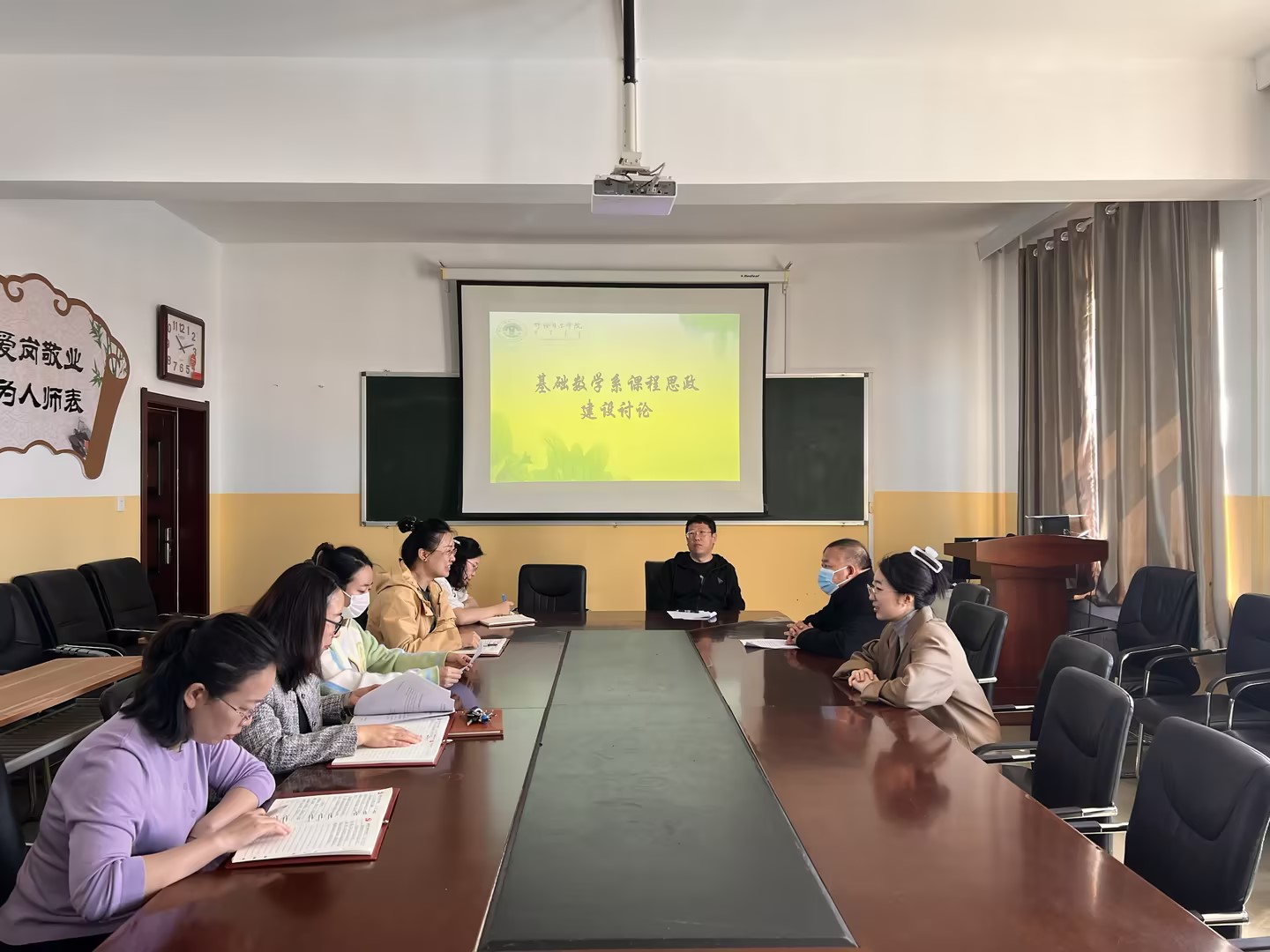 为了提高教学质量、促进教师之间的交流与合作,4月18日,数理学院基础数学系开展了课程思政研讨会。研讨会旨在深入贯彻落实全国高校思想政治工作会议精神,推动思政课程向课程思政转变,完善思想政治教育课程体系建设,充分发挥各门课程的育人功能。