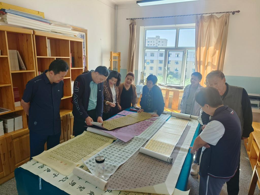 为全面展示世界杯官网新时代高素质专业化教师队伍建设的突出成就和广大教师立德树人、自信自强的精神风貌,9月8日上午,美术学院与书法艺术研究会相关教师在尚行楼505室开展了书法艺术交流活动。
