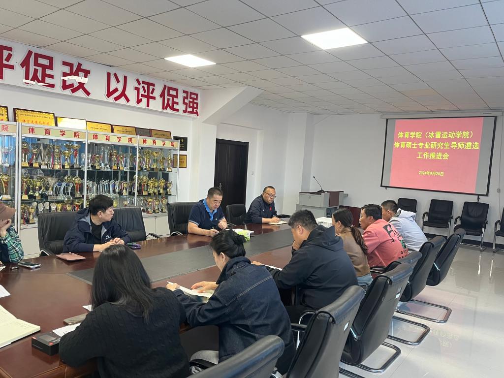 为规范学院硕士生导师的遴选、聘任与管理工作,加强导师队伍建设,保证研究生培养质量,体育学院(冰雪运动学院)于9月20日上午,在东山体育馆二楼会议室召开体育硕士专业研究生导师遴选工作推进会。会议由学院院长李晓峰主持,副院长林剑冬及学院学术委员会全体成员参加了会议。