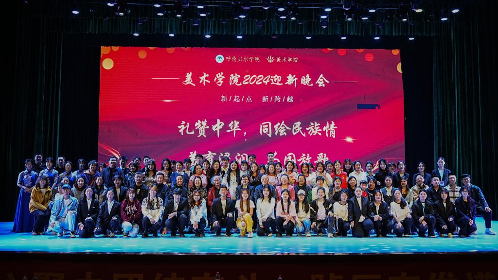 晚会邀请了呼伦贝尔市美术家协会名誉主席吴厚斌,呼伦贝尔市合作交流中心乌兰托娅,校团委书记王晓芳、学生工作处(党委学生工作部、武装部)副处长谢春晖等多位嘉宾,同时美术学院党总支书记巴达日呼、院长何锡彭、党总支副书记张巍巍以及学院全体师生参加了本次迎新晚会。