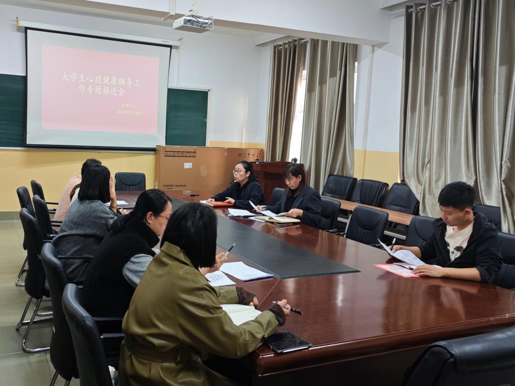 为进一步提高大学生心理健康教育工作水平,为学生的健康成长提供有力保障,10月8日下午,数理学院在笃学楼410会议室召开了大学生心理健康辅导工作专题推进会。学院党总支书记杨巧智、团学办全体教师参会,会议由学院党总支副书记乌日拉主持。