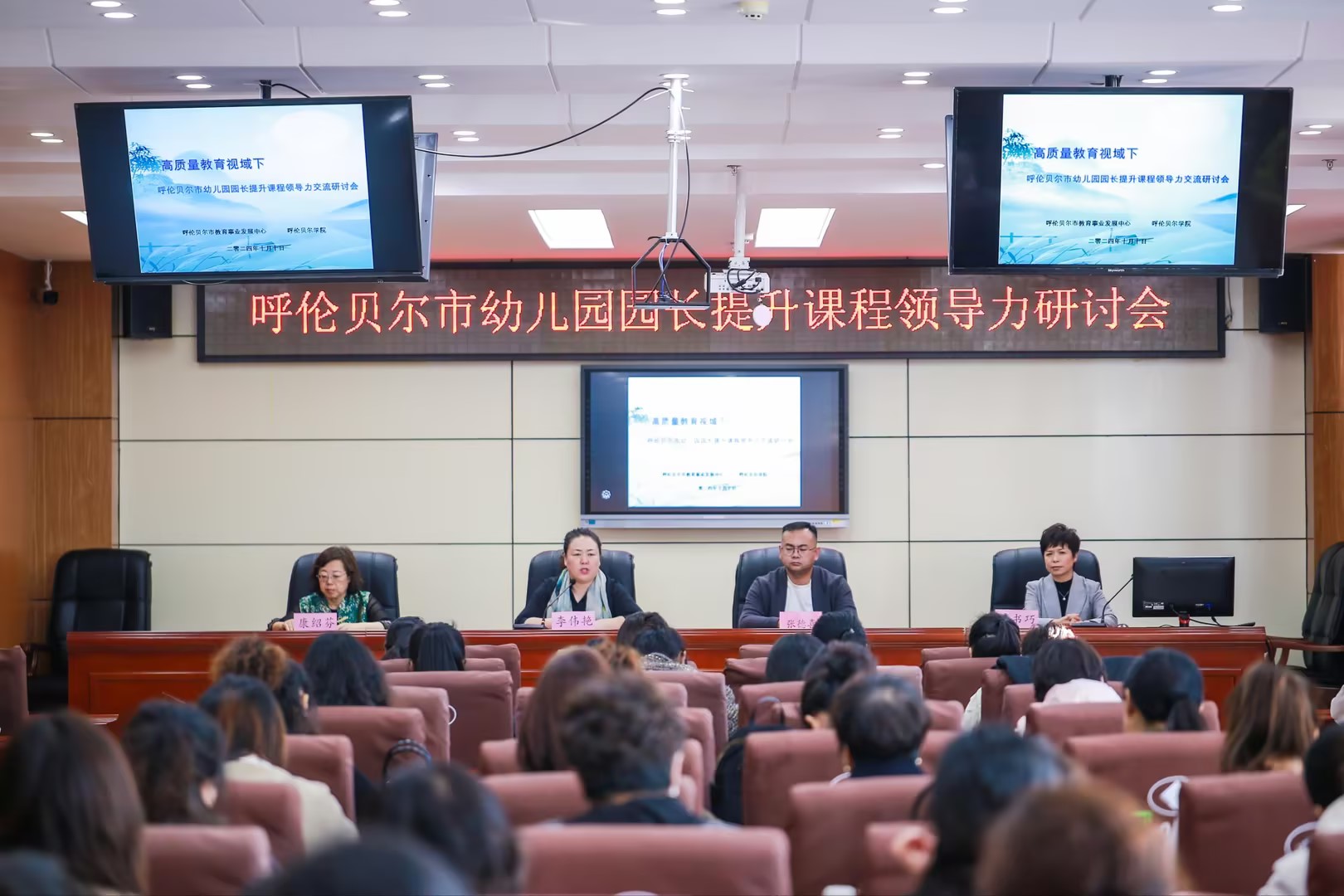 本次会议旨在进一步密切高校、教育行政部门、学前教育一线等教育人员在提升幼儿园教育质量,加强园长的课程领导力方面的专业沟通,协同推进呼伦贝尔市学前教育高质量发展。河北省特级教师、省级教育督导专家,河北省直机关第四幼儿园园长苏书巧、呼伦贝尔市教育事业发展中心幼特教教研室主任康绍芬、中心城新区新海幼儿园副园长刘丽红、鄂温克第三幼儿园园长索日娜、满洲里市幼儿园保教主任刘丽芬与呼伦贝尔市四所高校学前教育专业负责人、骨干教师、各旗县幼儿园园长等120余名幼教同仁通过专家讲座、幼儿园课程建设交流、名师工作坊、幼儿园课例分析等环节,共同探讨呼伦贝尔市学前教育事业的高质量发展路径。