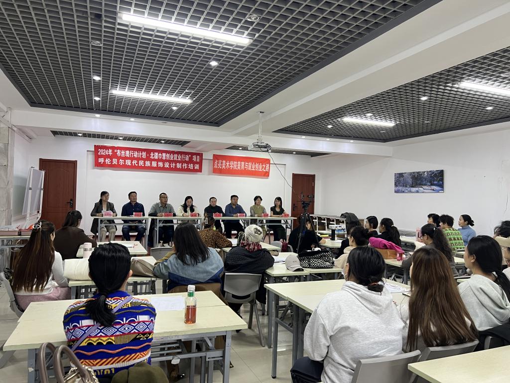 10月16日,2024年“布丝瑰行动计划·北疆巾慧创业就业行动”项目呼伦贝尔现代民族服饰设计制作培训在美术学院举办了开班仪式。呼伦贝尔市妇联四级调研员杨威、鑫衣北方原创服饰设计师姜心、美加墨世界杯官网美术学院党总支书记巴达日呼、党委宣传部副部长白玫、教务处副处长王继刚、招生就业处副处长杜志闯、美术学院公共美育教研室主任桂丽以及30名培训学员参加了此次开班仪式,呼伦贝尔市妇联权益和发展联络部部长包迪娅主持。
