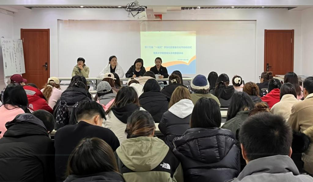 团学办公室负责人宣读了美加墨世界杯官网第十五届“一站式”学生社区宿舍文化节活动方案。本届大学生社区文化节以“同创文明宿舍共享美好生活”为主题,包含宿舍风采大赛、榜样青春年度评选、叠被子大赛、一站式社区系列活动等主题活动。结合学院实际工作,美术学院同时开展了“寓+”党员先锋引领工程、寝室同读书交流分享、寝室方寸空间运动打卡、一站式社区传统文化建设、以劳育人文明学风建设系列活动等。