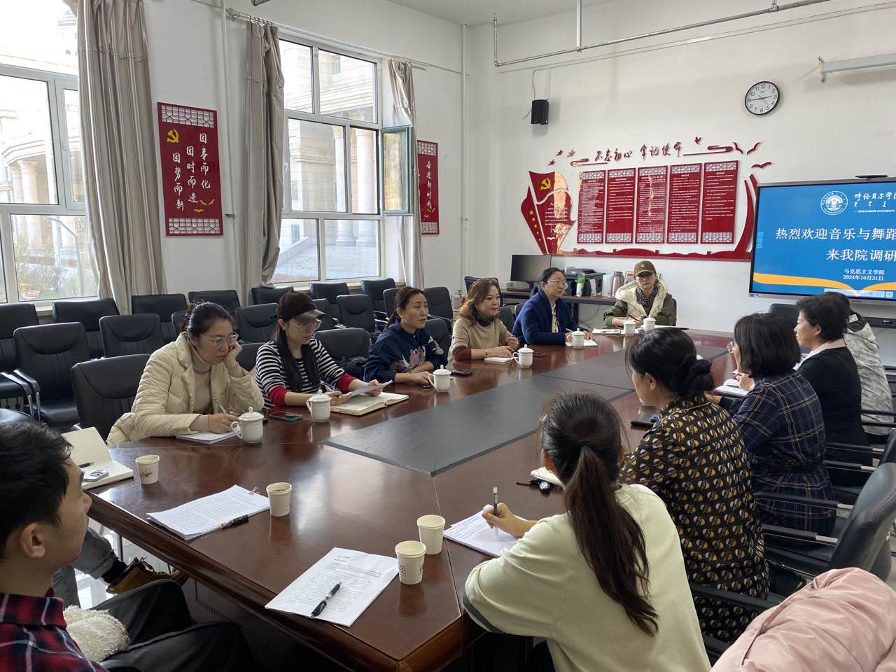 10月31日下午,音乐与舞蹈学院院长灵芝、副院长刘丽丽、教科研办主任吴佳昱、音乐学系主任都莹及各系主任一行7人赴马克思主义学院就师范专业认证相关工作交流学习。
