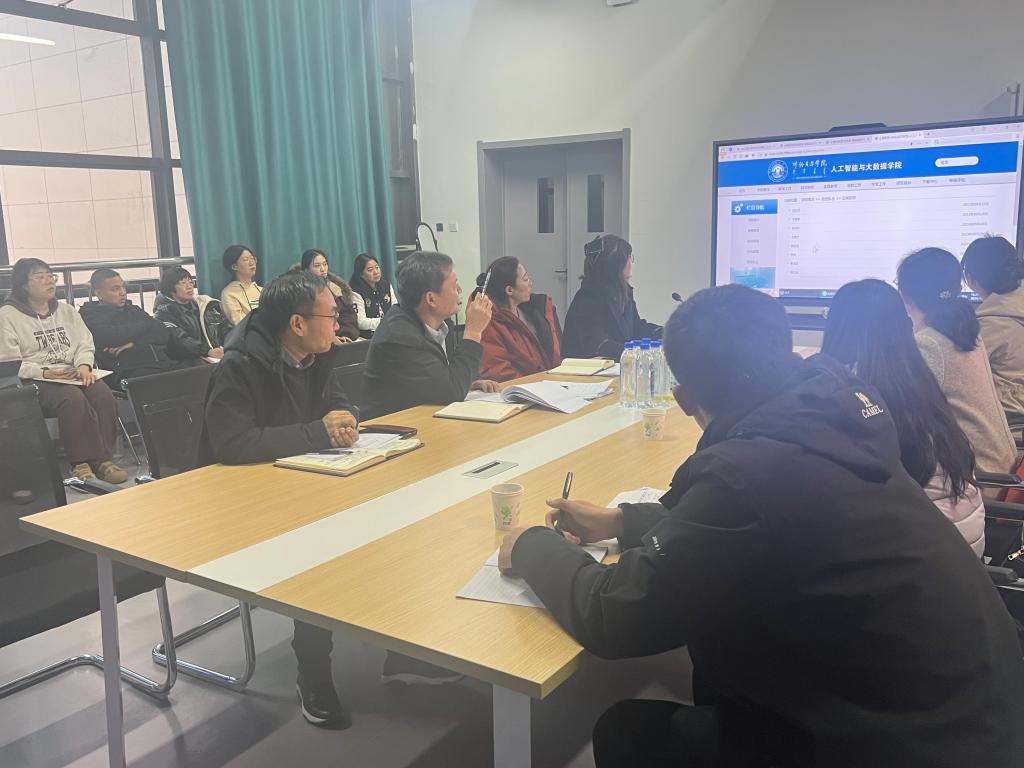 11月6日下午,学校评建办公室主任娜布其一行深入人工智能与大数据学院调研指导本科教育教学审核评估工作。学院院长刘仁山、副院长耿卫江、环节干部、系部负责人、评估工作组成员及教师代表参加会议。
