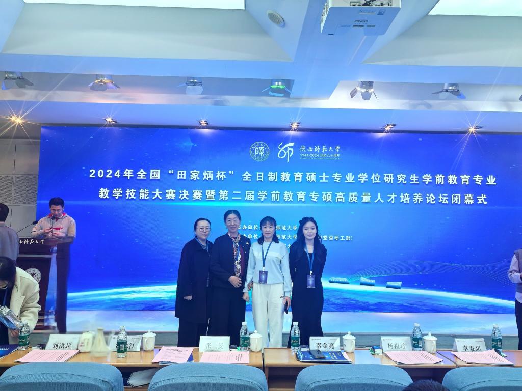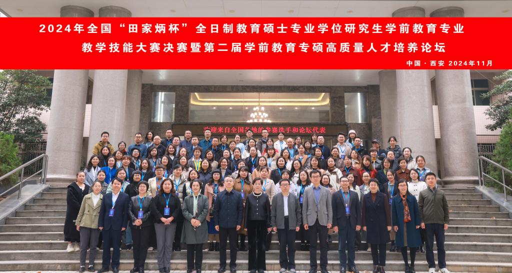 11月9日至10日,教育强国背景下学前教育专硕高质量人才培养论坛暨2024年全国“田家炳杯”全日制教育硕士专业学位研究生学前教育专业教学技能大赛决赛在陕西师范大学隆重举行,教育学院教师仲伟秀、张柏龄、王涵和2023级学前教育专业硕士研究生赵伊凡参加。